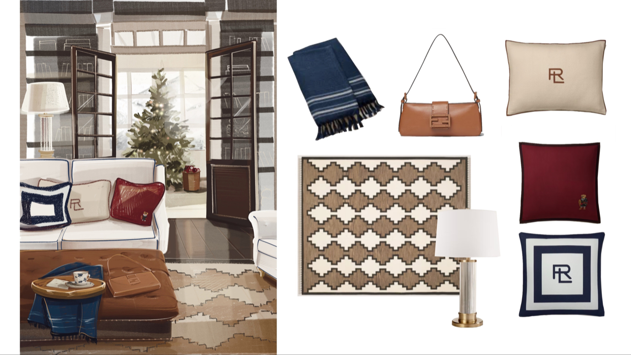 4️⃣ Next, I created the final illustration, adding décor and furniture pieces inspired by the Ralph Lauren Home collection.