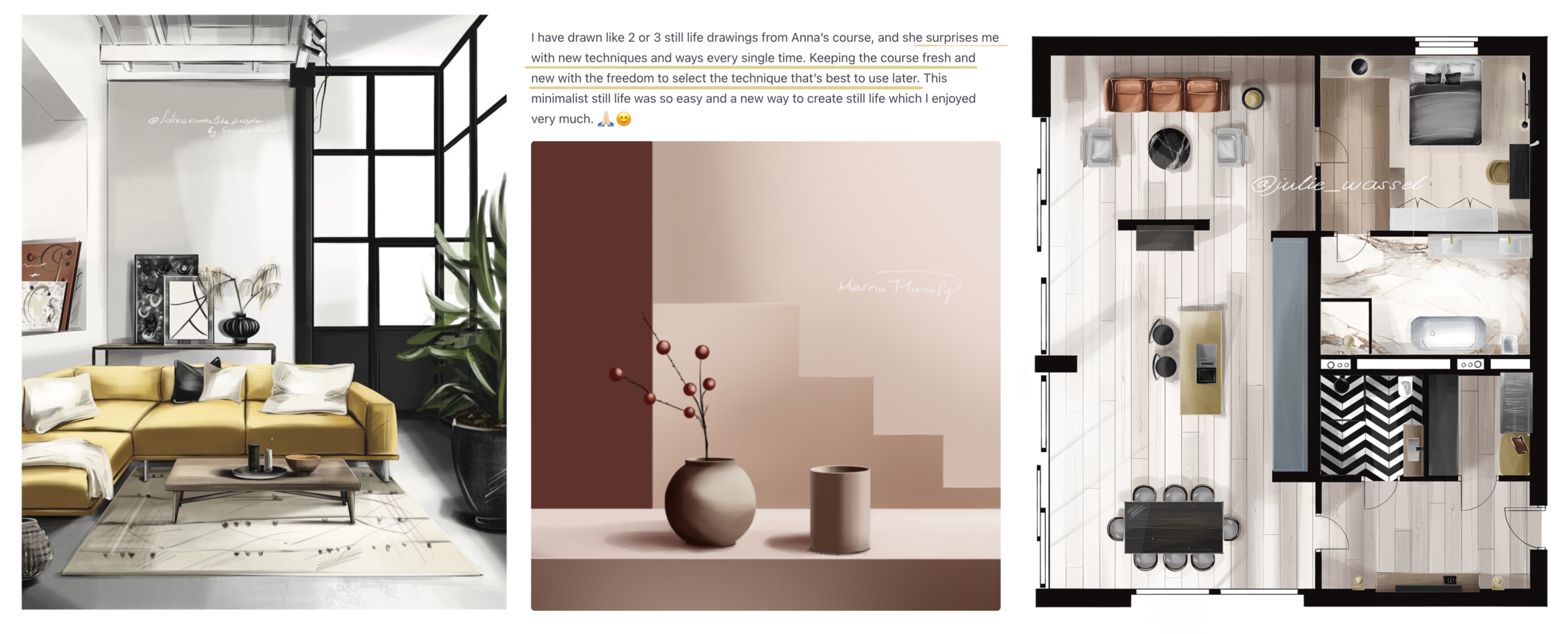 A dream job offer in an interior design studio - working with celebrity clients - got canceled due to the pandemic. That’s when And She Draws Big officially started.