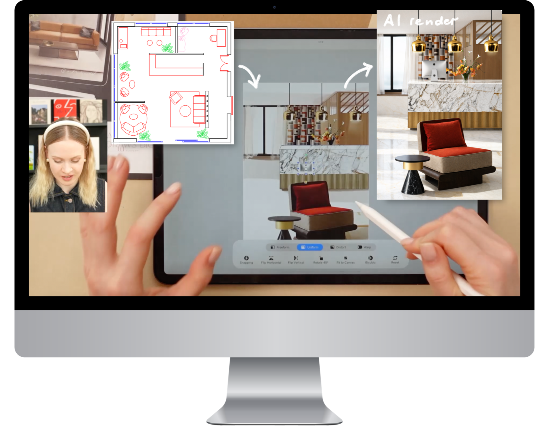In just 30 minutes, you’ll watch a hotel lobby concept come to life — drawn step by step on the iPad and transformed into an AI render by the end of the workshop.